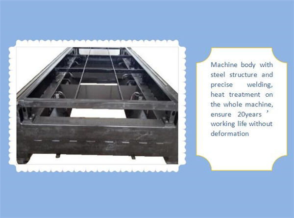 1. Unser Maschinenkörper mit 8mm Stahlkonstruktion, 600 ℃ Wärmebehandlung, präzises Schweißen, um sicherzustellen, dass 20 Jahre ohne Verformung verwendet werden.